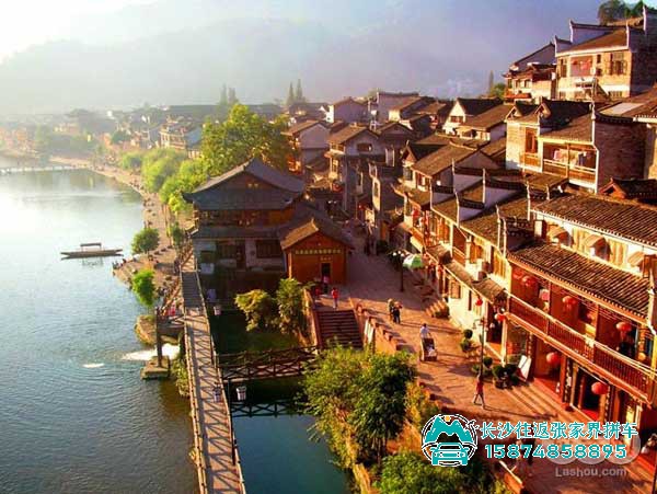 15:30 前往中国最美的小城------【凤凰古城】(自理凤凰接驳车28元/人)是一个艳遇之都,是一个不夜之城,是一个来了不想走的地方,为了你的到来,这座城已等待了千年!万家灯火、夜游沱江、赏沱江两岸烦火澜珊、沉醉其中,街边吃小吃感受特色饮食,酒店小坐体会南方小镇酒吧文化,如此浪漫之夜眨眼即过。沱江】是凤凰县境内的河流,对于游人来说,它就是凤凰古城城墙边的那段河流。沱江的水,碧绿而清澈,两岸是已有百年历史的土家吊脚楼。沱江的南岸是用紫红沙石砌成古城墙,久经沧桑,依然壮观。